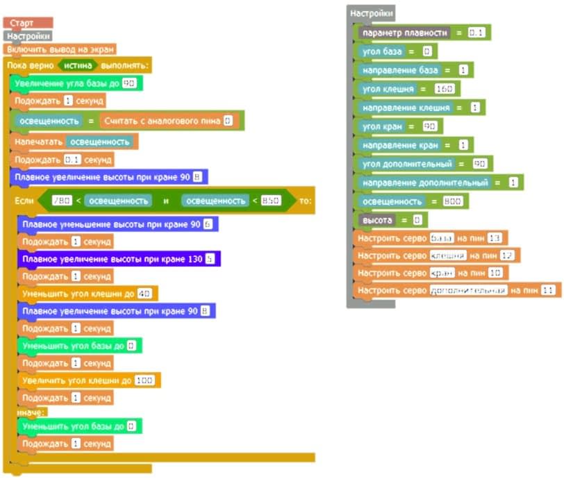 Сгенерированный код из RobotON Studio. Здесь создавались Pin-Up которые позволили сократить основную логику. В наших курсах по конструированию роботов Вы сможете найти все необходимое, чтобы разобраться в программе (видео, методические материалы).